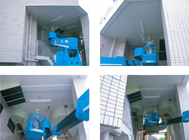 クモクリア使用実績で一番多いのは、商業施設やアパート・マンションの軒天に発生する蜘蛛の巣対策です。やはり建物の入口付近に蜘蛛の巣が発生していては、顧客が抱く印象は決して良いものではありません。